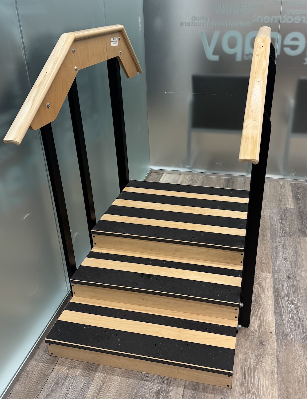 The CanDo Small staircase 30" is a small straight staircase for places with limited space. Patients can ascend and descend without turning and can lean on the rigid, bolt-through mounted handrail for support. The equipment is approximately 3 years old, lightly used and in excellent condition. Located in Palm Harbor, FL.