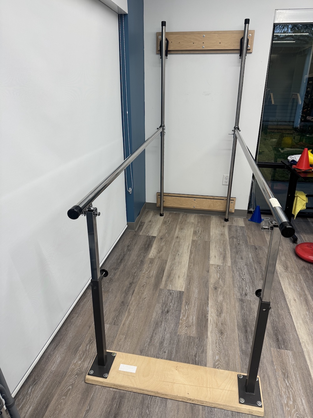 The equipment is approximately 3 years old, lightly used and in excellent condition. Located in Palm Harbor, FL. Only requires 14" of floor space when it is stored. With a folded height of 92", the Parallel Bars can be folded hassle-free when not in use.