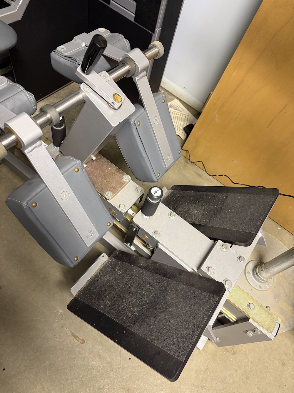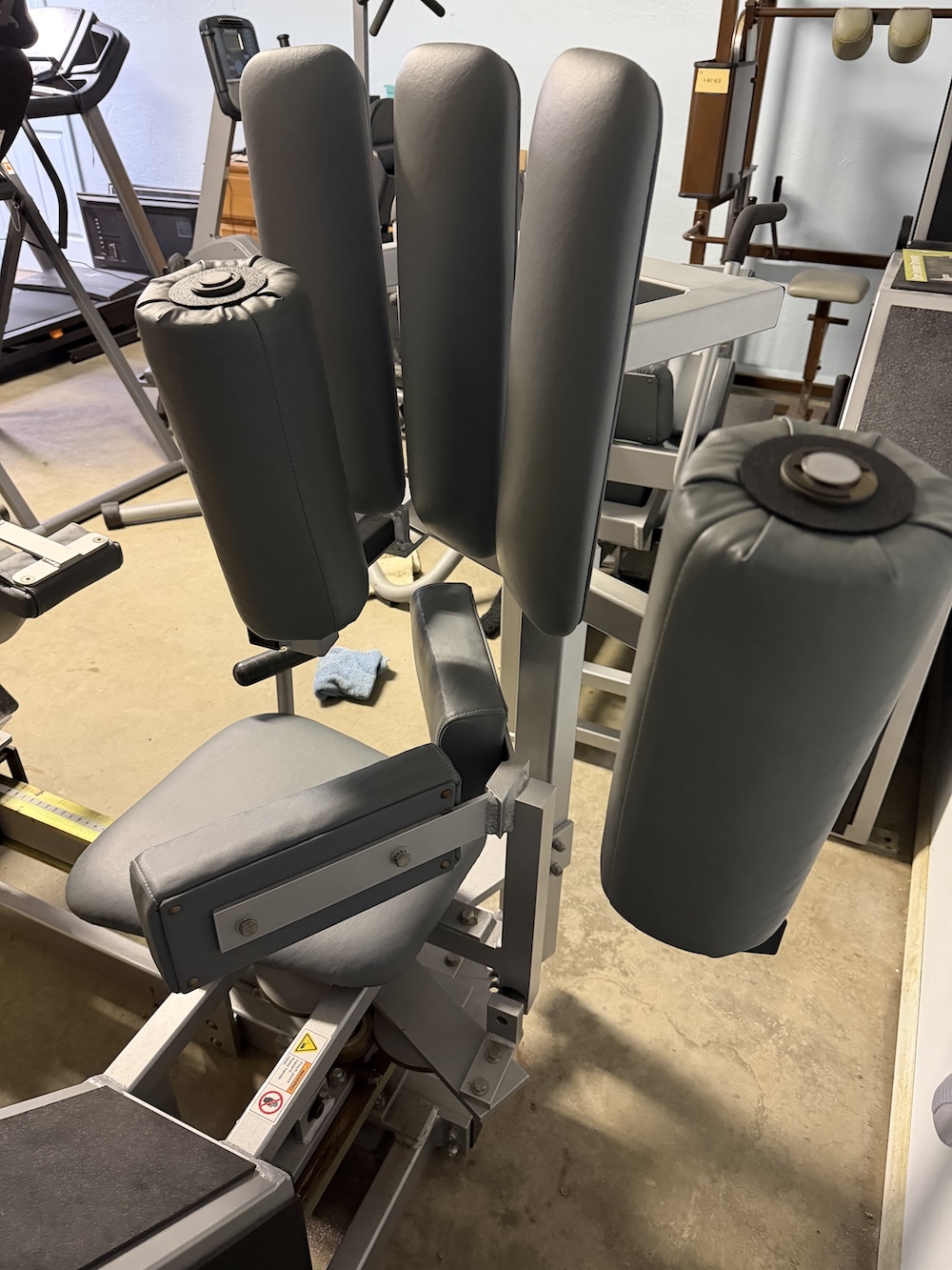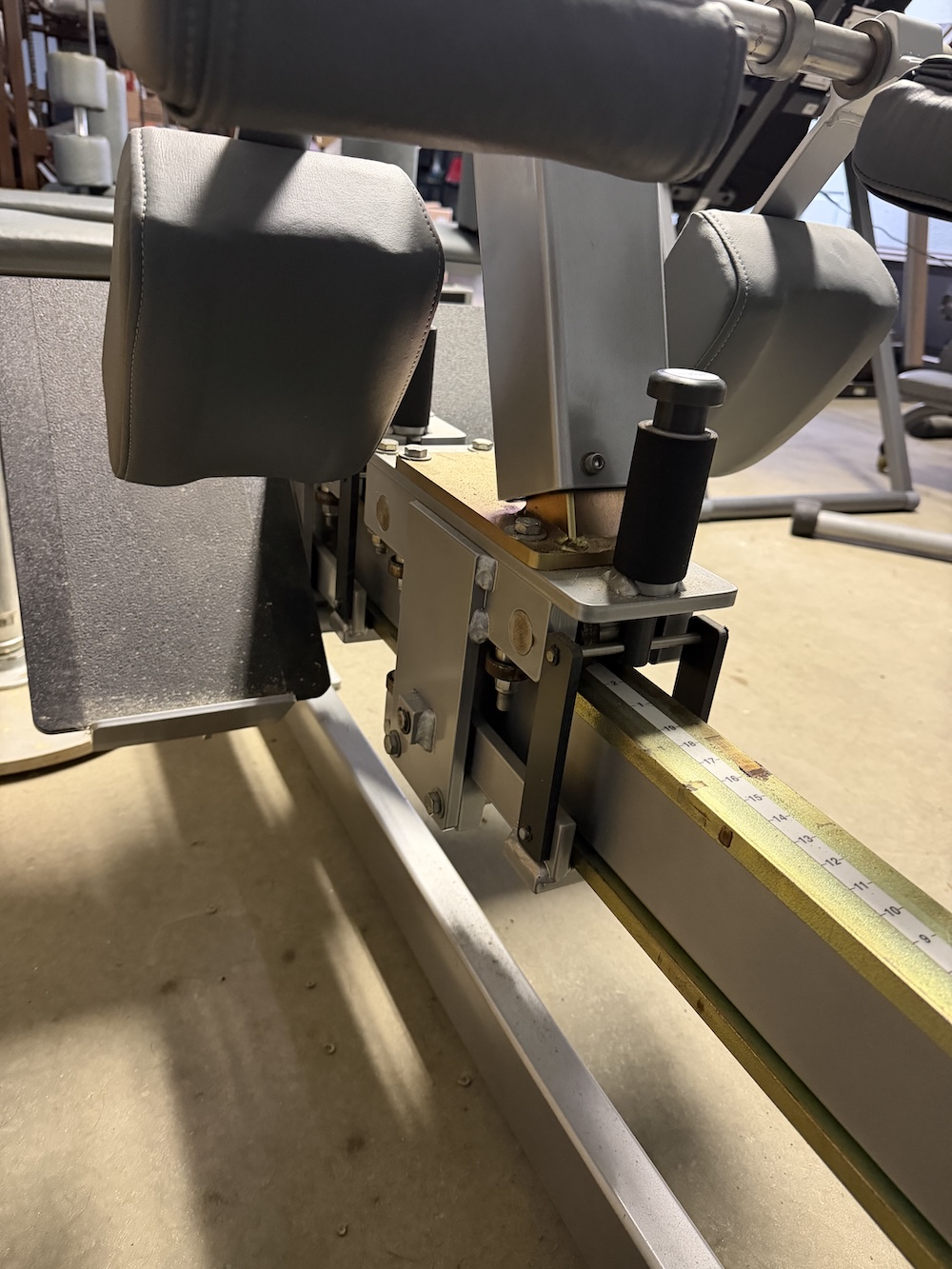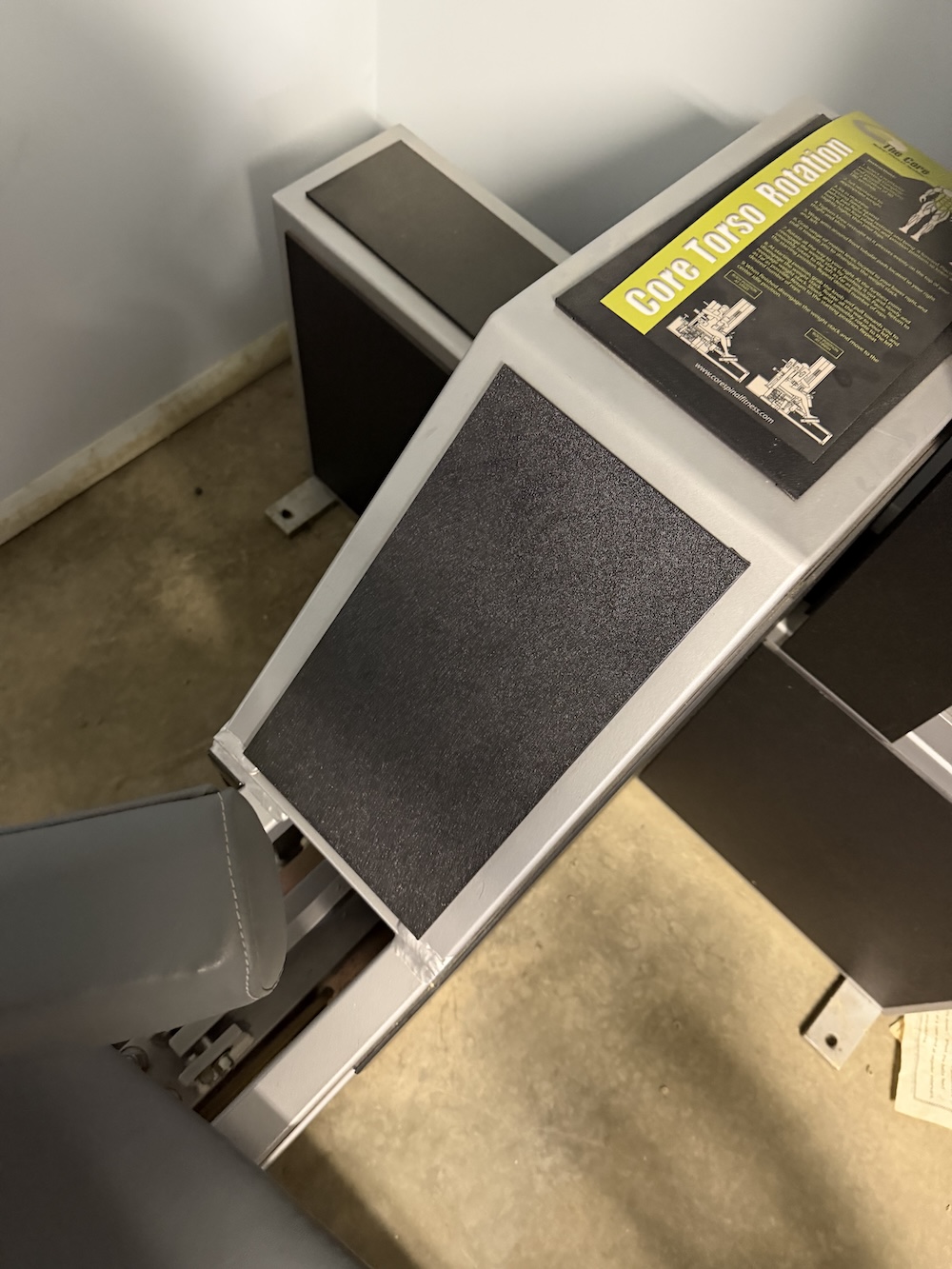 Unique padded restraint system neutralizes shoulder, arm and chest muscles while isolating waistline muscles. Separate system of padded restraints effectively locks the pelvis and prevents the hip and gluteus muscles from assisting in rotation of the torso. Owned by an individual. Located near Nashville, Tennessee.